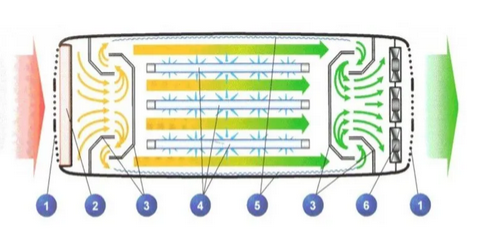 A légtisztítóban lévő cserélhető lég és aktív szén szűrő megállítja a 10 μm-nél nagyobb részecskéket: finom por, virágpor, növények és penészgombák, fertőtlenítőszerekből származó anyagok, aeroszolok, koromrészecskék.